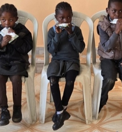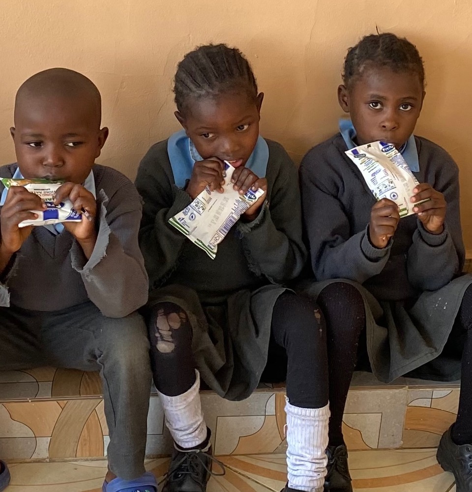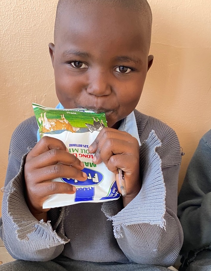 Children who show signs of malnutrition are given a carton of milk to drink three times a week. Other children who appear “weak” can also be added to the program.